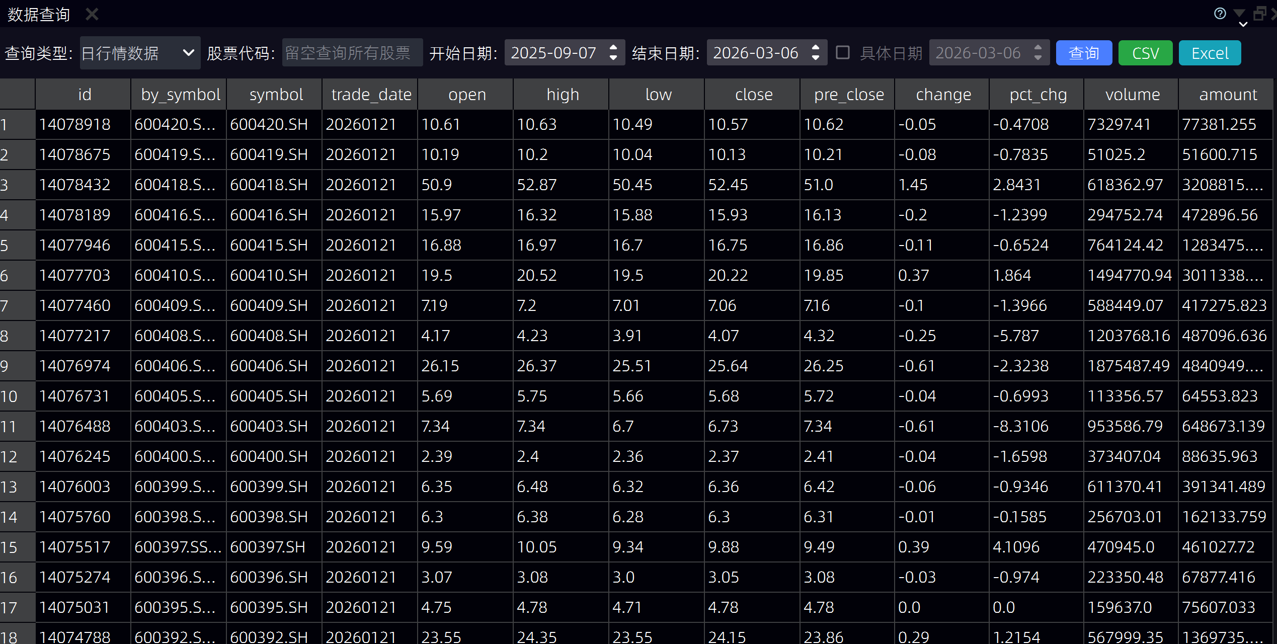 功能说明:用于查询和分析系统中的数据,包括行情数据、基本面数据等。