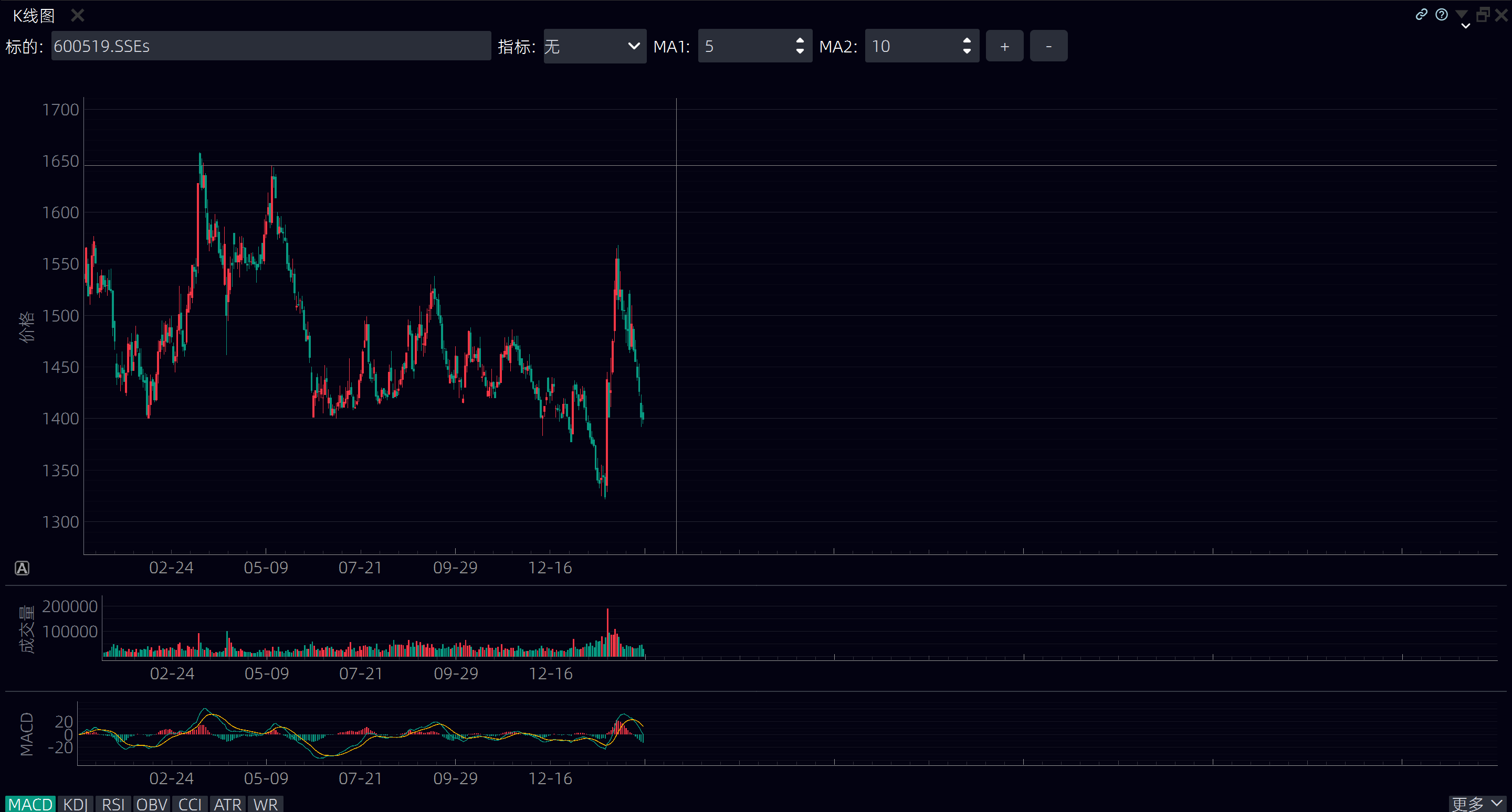 功能说明:显示标的的K线图表,支持多种周期和技术指标。
