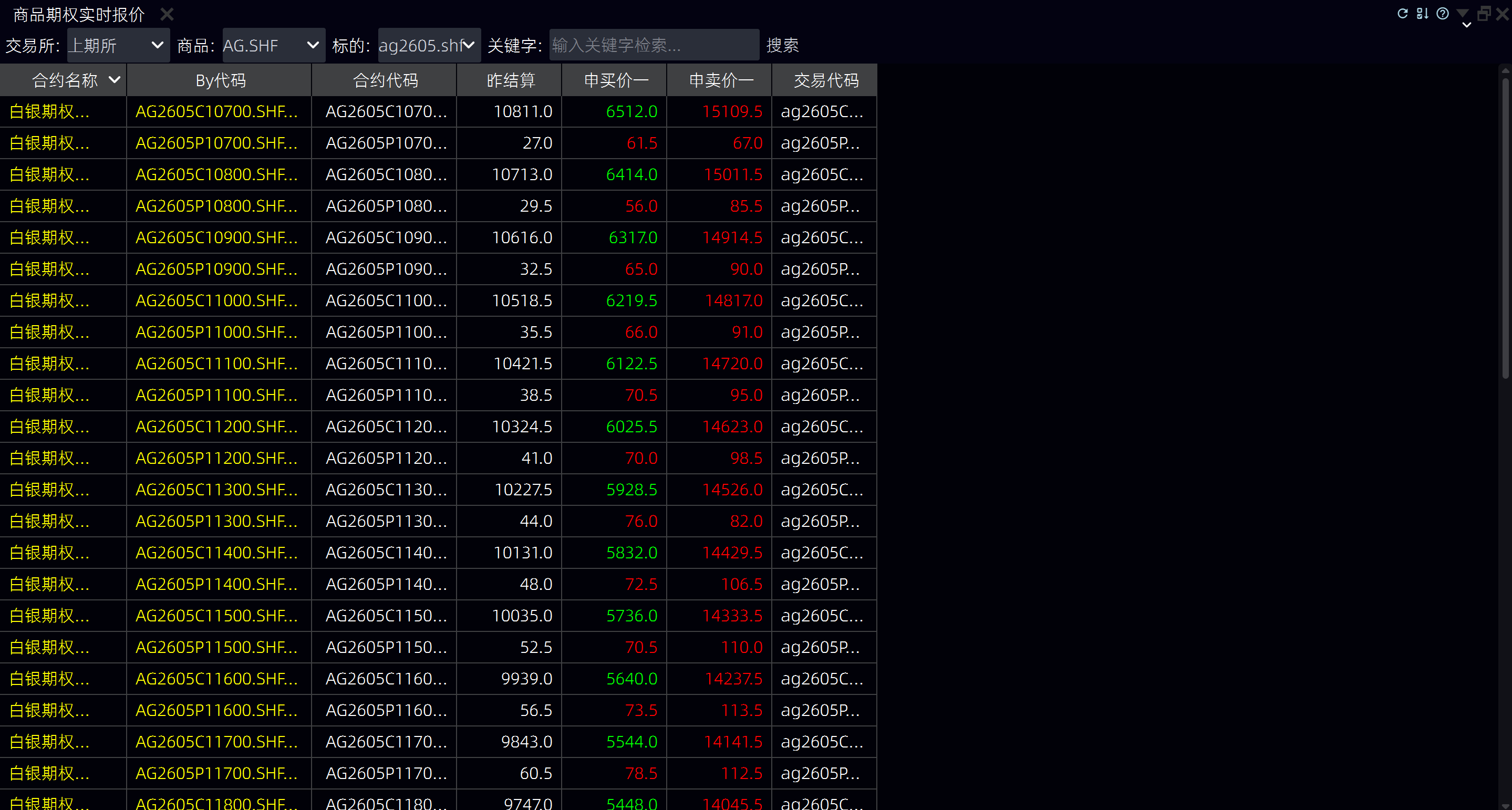 查看报价信息 - 查看期权合约的最新价、涨跌幅、成交量、成交额等信息 - 查看期权合约的开盘价、最高价、最低价、昨收价等信息 - 查看期权合约的买卖盘口信息